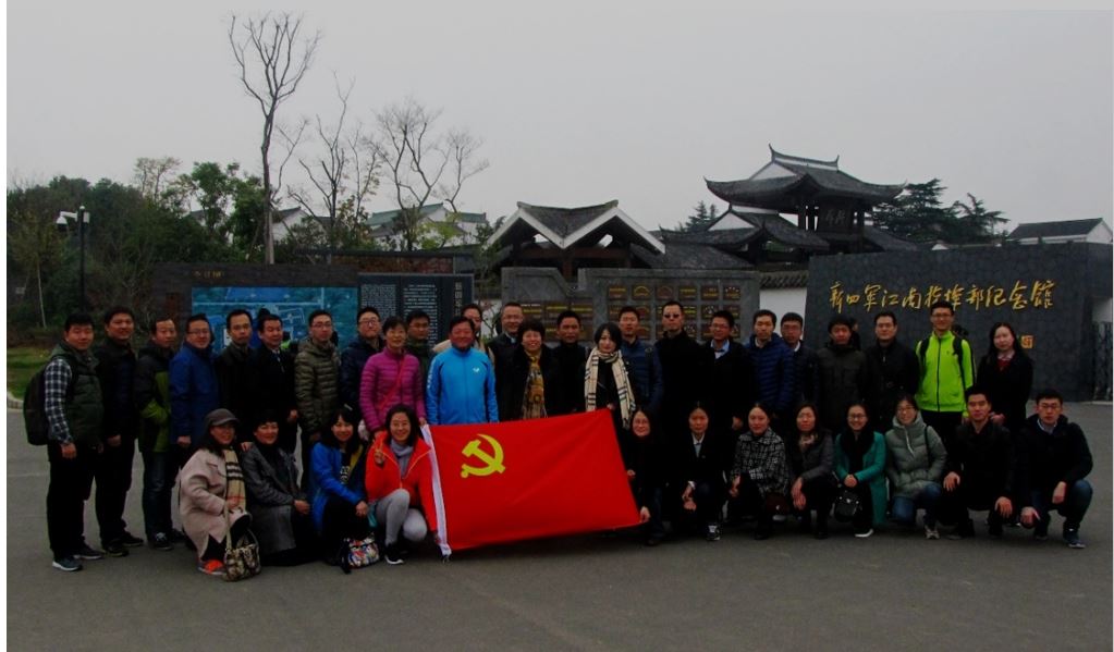 全体党员在溧阳水西村新四军江南指挥部纪念馆前合影留念