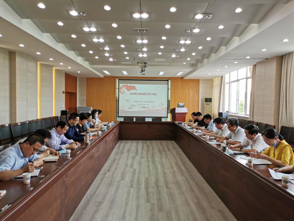 党委在至行苑•工程实践中心9号楼三楼会议室召开校内第三轮巡察工作汇报会,校党委常委、第一巡察组组长朱晓春,巡察组全体成员,天天德州