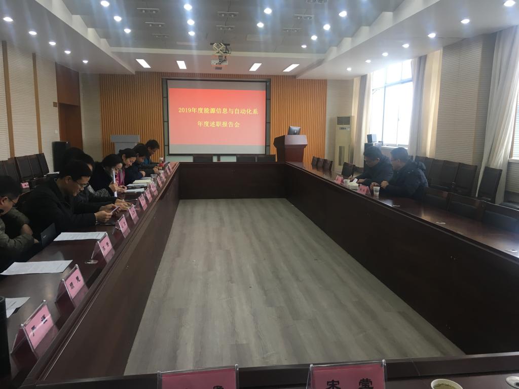 三楼会议室参加能源信息自动化系述职会,会议由该系系主任裘浔隽主持。