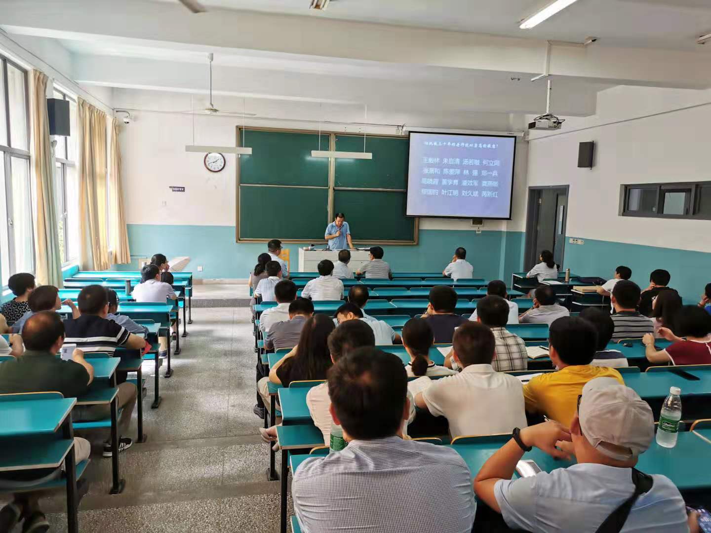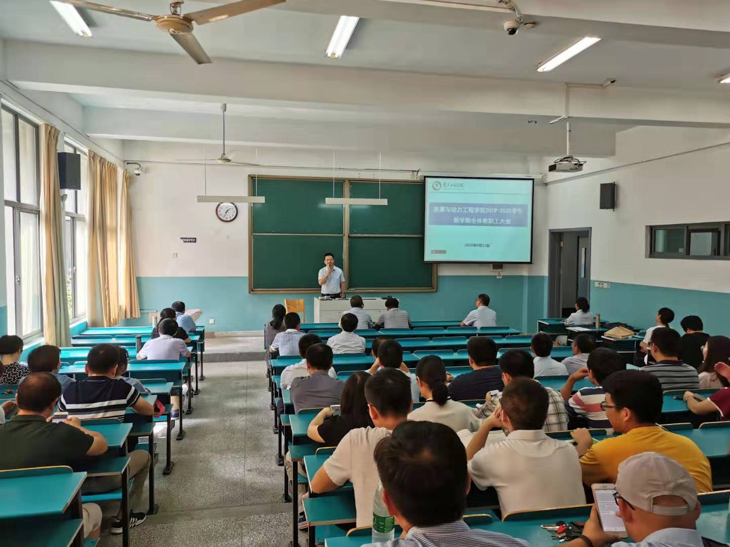 在经管楼D101室召开新学期全体教职工大会,会议由天天德州