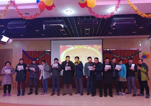 本次迎新春联欢活动以工会小组为单位准备节目,教师们准备的歌曲独唱、大合唱、诗朗诵使整个活动高潮迭起,掌声不断,期间穿插的抽奖活动,更让人充满期待,给活动增添了无尽的喜气。