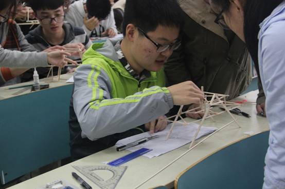 在学海苑·公共教学组团南馆大厅举办“木桥承重”结构设计大赛。88组参赛选手运用知识和创意,给重量不足100克的木桥赋予了惊人的承重力。
