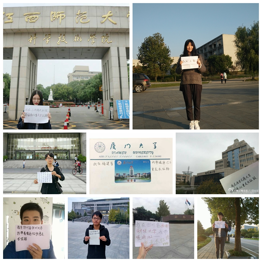 活动中,暖通152团支部利用微博平台,创建了“带着暖通152重走长征路”的话题,向红军长征途中经过的江西、福建、广东等11个省份,包括中山大学、湖南大学、西南交大等高校的同学发出邀请,征集“我在xx省,我在xx大学,我带着暖通152重走长征路”系列照片。该团支部根据长征路线,将一个省份作为一个站点,顺次进行微博接力。活动开展以来,得到了近30所大学同学的支持,先后征集照片100余张。支部微博得到了西安交通大学、桂林电子科技大学校团委等高校官微的关注与互动,专题微博阅读量近4万次。在各大高校同学的帮助下,该支部“过草地”、“翻雪山”,完成了指尖上的重走长征路。
