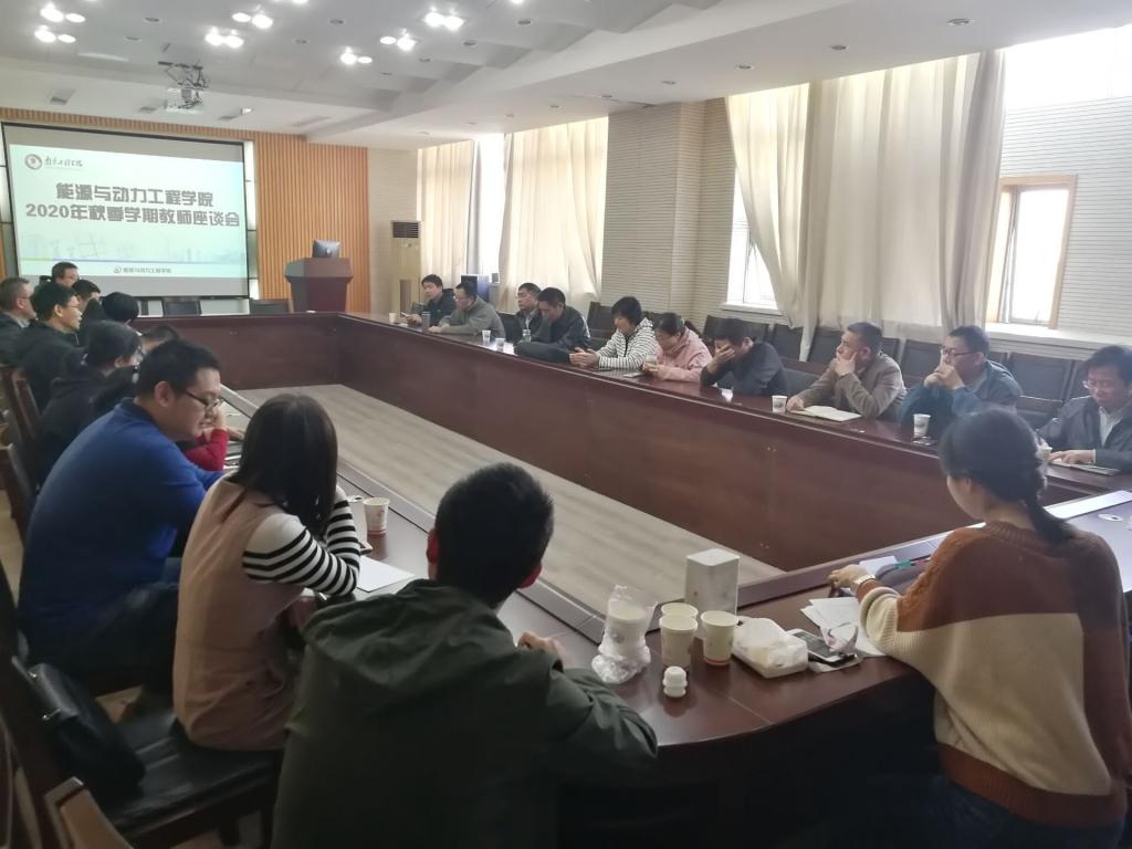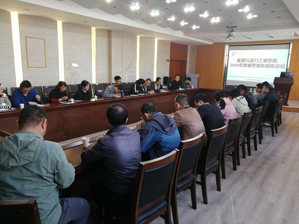 在工程中心9号楼三楼会议室举行2020年秋季学期教师教学座谈会,会议由能动天天德州