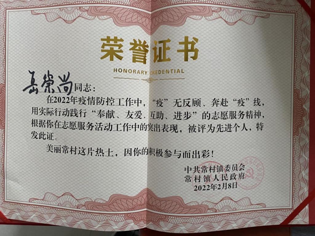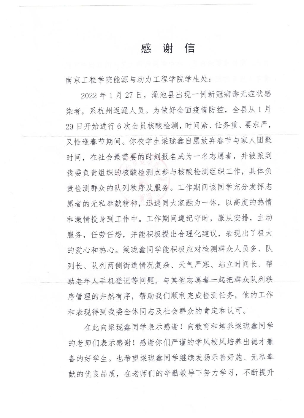学子积极参与疫情防控志愿服务活动表示感谢。