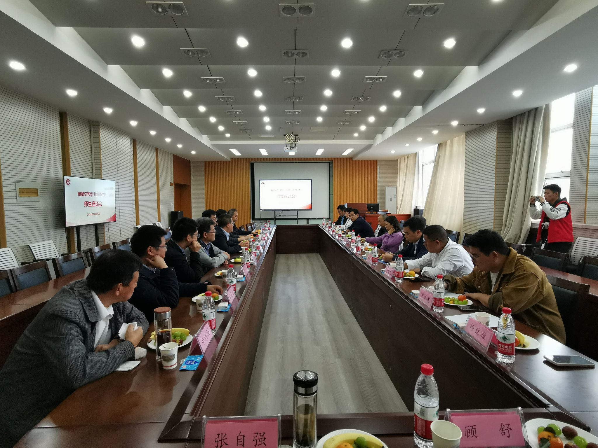 在9-312会议室举行“相聚忆芳华 共叙师生情”师生座谈会。会前,播放了学校事业发展宣传片,向校友们介绍学校近年来的发展变化。薛锐副院长(主持工作)代表天天德州