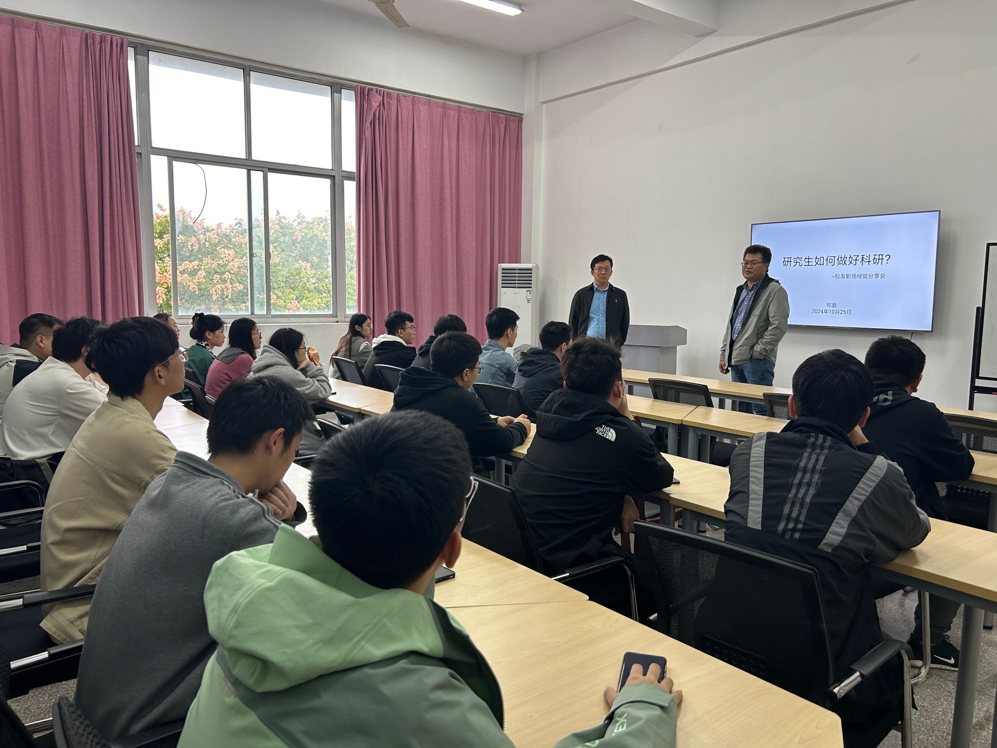 集控071校友祁晶受邀为研究生作了题为“研究生如何做好科研?”的科研经验分享会,分享会由张君副院长主持。他首先介绍了自己的科研经历,他长期从事超临界CO2循环换热器腐蚀、超临界机组给水加氧处理、超临界机组金属氧化膜剥落机理研究,承担国家自然科学基金、江苏省自然科学基金、国家电网公司科学项目。发表相关SCI收录论文6篇,EI收录论文1篇,授权国家发明专利1项。曾指导学生获得第十二届“挑战杯”中国大学生创业计划竞赛国赛银奖。他从“理解科研的本质”、“明确研究方向和目标”以及“制定科学的科研计划”等方面进行了分享并对“如何培养良好的科研心态”提出了建议。