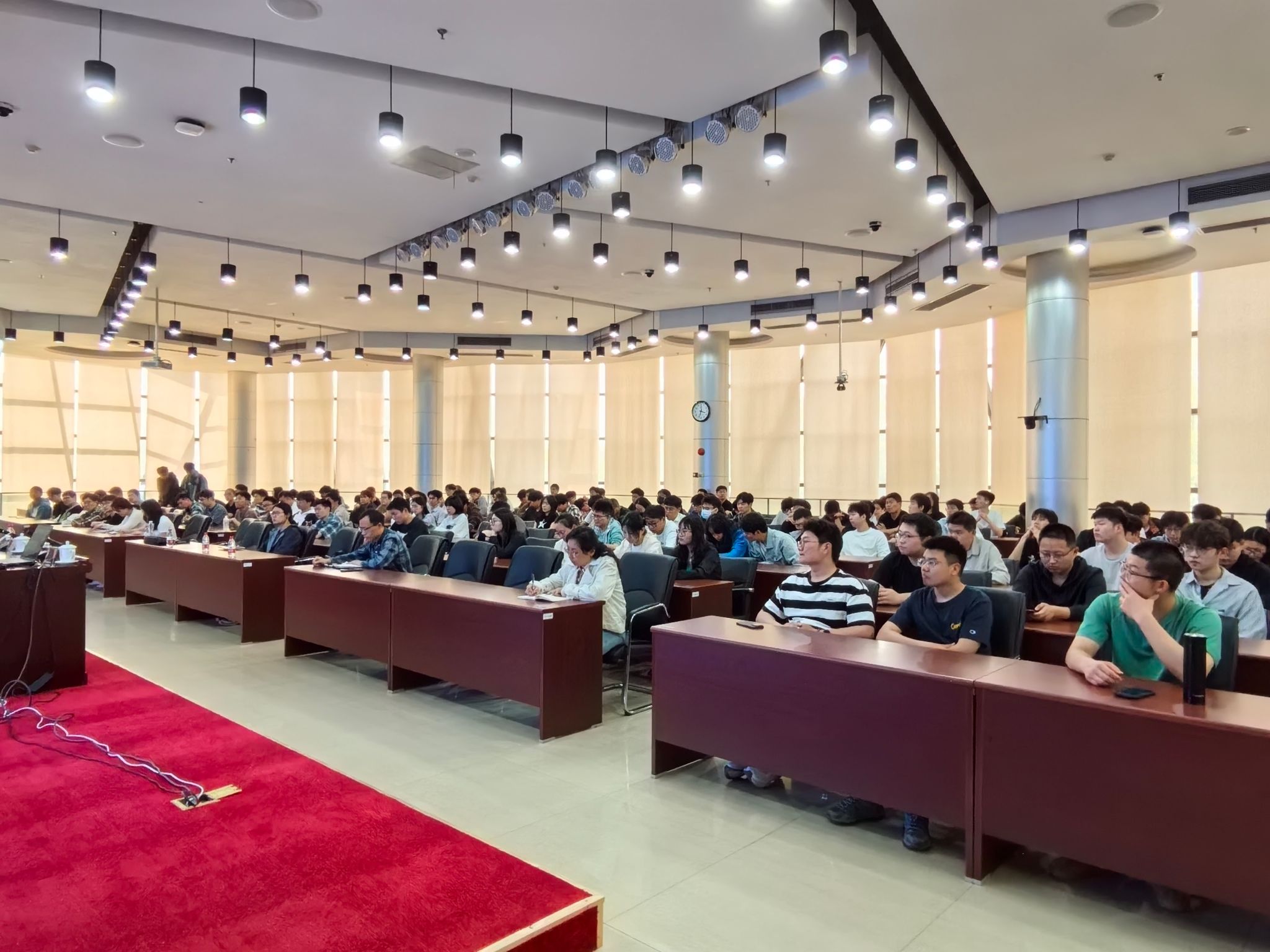 党政负责人,相关专业教师和学生代表等聆听报告。