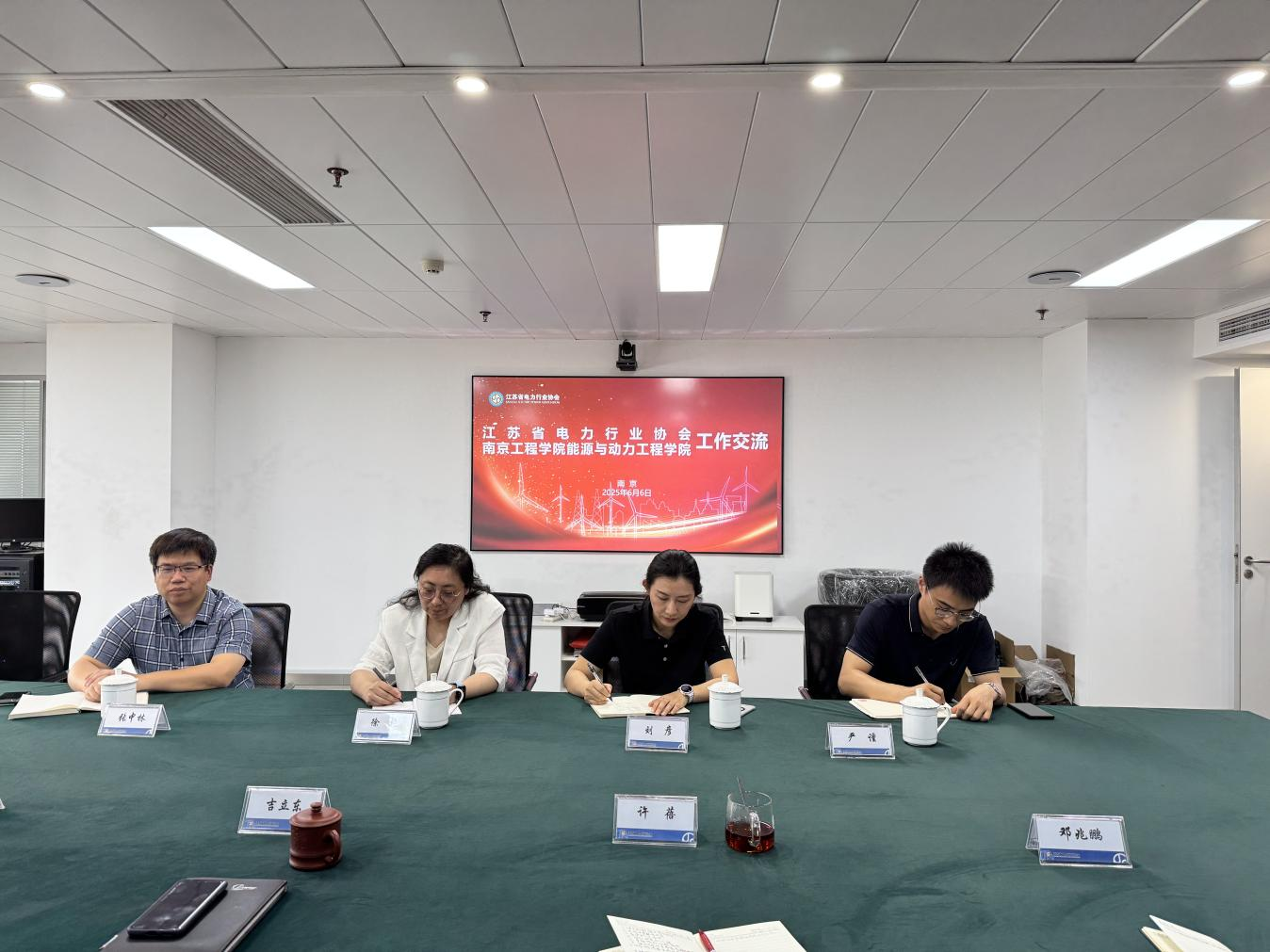 相关负责人一行前往江苏省电力行业协会走访交流。江苏省电力行业协会秘书长吉立东、发电专委会主任李晓东、综合部主任许蓓等热情接待并参与座谈。