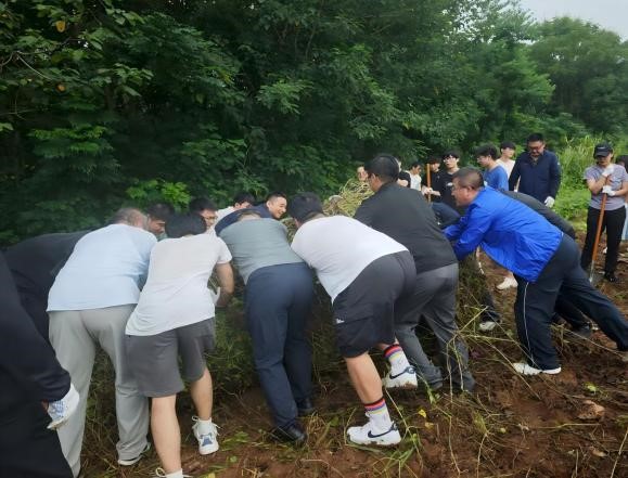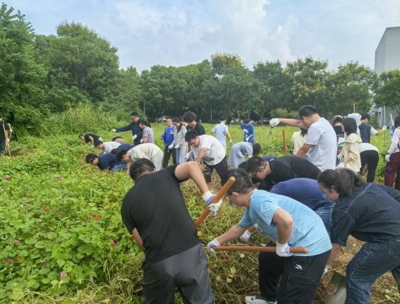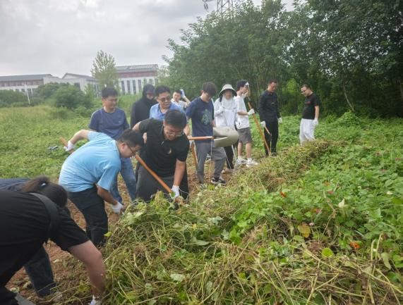 党员教师、科级干部及学生党员代表,共同前往“知行园”劳动实践基地,开展首次除草、土地平整等建设工作。