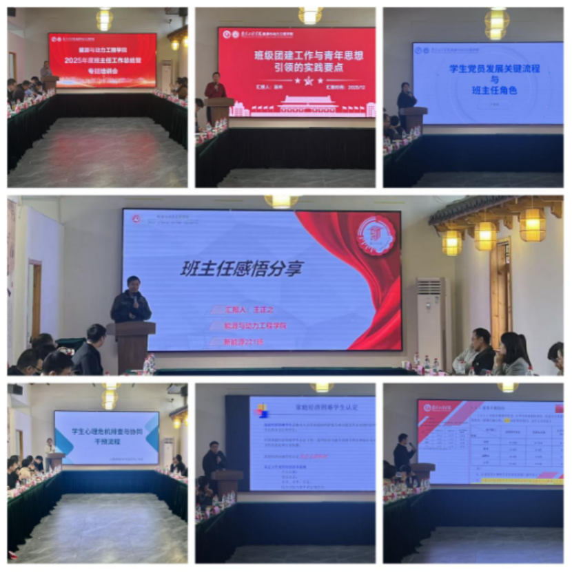 年度学生工作成效,重点介绍了学风建设、学生管理与协同育人举措,并宣读了校级、院级班主任表彰决定。
