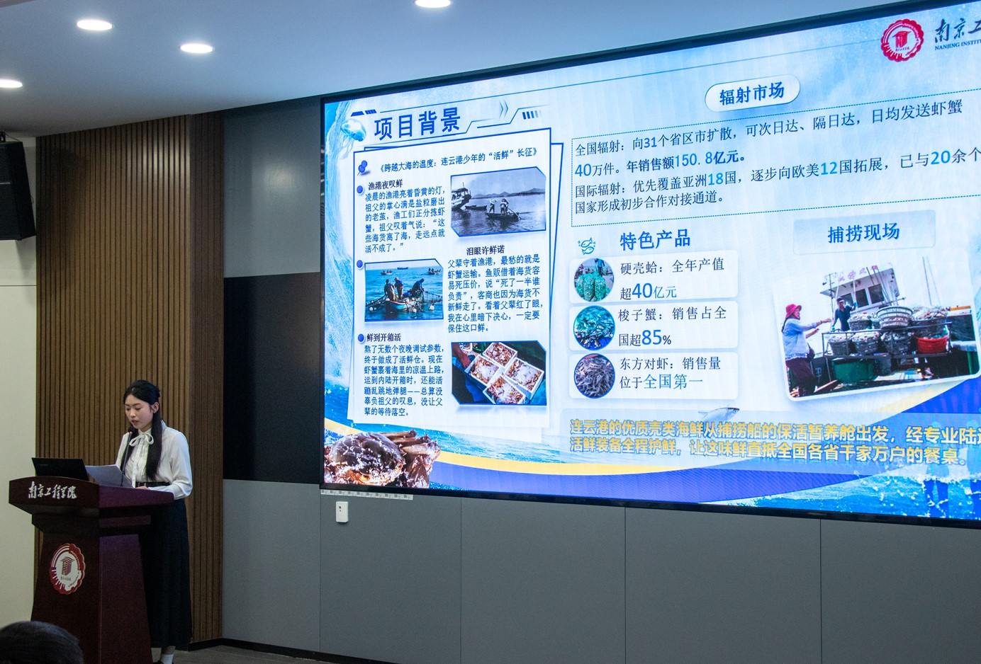 领导与能创导师组成评审团,从创新性、可行性等维度进行考评。决赛环节采用“5分钟路演+3分钟答辩”的“5+3”模式,项目团队依次登台,通过PPT展示、现场演示、互动答辩等形式,全面呈现项目核心技术、商业模式、市场前景及社会价值。