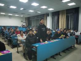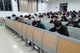 尽管初赛时间在晚上,而且天公不作美,下着淅淅小雨,但同学们仍以极高的热情积极参与了此次活动。比赛中同学们自觉地按秩序就座,答题过程中,同学们或蹙眉苦想,或托腮冥思,积极开动脑筋,展现了天天德州
