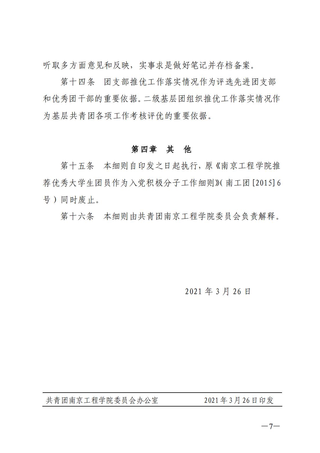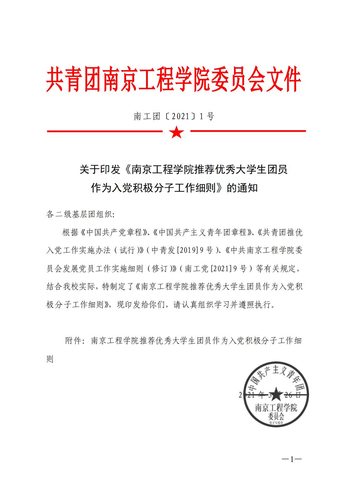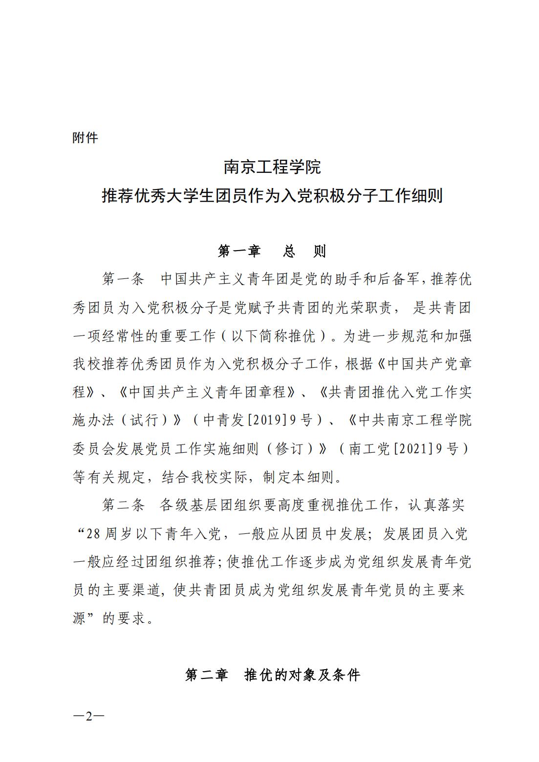 关于印发《南京工程天天德州 推荐优秀大学生团员作为入党积极分子工作细则》的通知