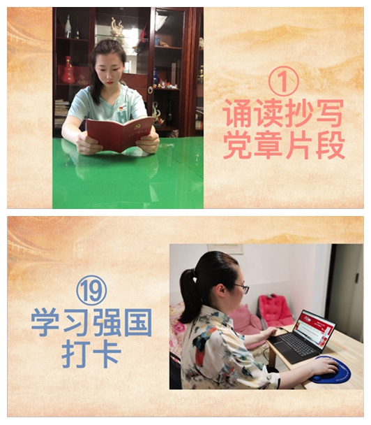 诵读《共产党宣言》,写党史读书笔记,观看党史题材影视,学习强国打卡……团队成员依托共青团中央宣传部出品《党员必做的50件小事》,根据自身情况通过云端打卡的方式,点亮图标,解锁“已完成的小事”进度条。“疫情期间,同学们接力赛似的纷纷‘晒打卡’,我也不能落后,回顾入党以来,自己做过哪些事情,能更好的提升自己,未尽的事宜,能更好的鞭策自己进步。”参加活动的李嘉龙说到,“除此之外,为了增强共产党员的身份认同感,鼓励更多人加入到传承红色基因、赓续红色血脉的队伍中,我们还收集了团队成员的打卡瞬间制作照片合集,希望能以年轻人喜闻乐见的方式来传播红色精神”。