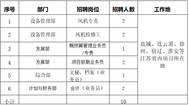 根据江苏公司人力资源计划,现为所属单位面向社会、国家电投集团系统招聘。具体岗位及职数如下: