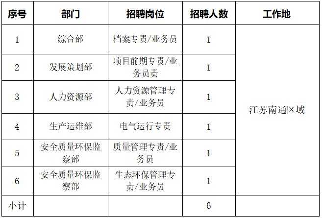 公司主要负责江苏省南通区域海上风力发电项目开发、投资、建设及生产运营管理。自2021年8月1日起负责一体化运营管理南通区域如东H4#、如东H7#海上风电项目和受托管理的上海电力九思蒋家沙海上风电项目(共计110万千瓦),履行南通区域海上风电项目资源获取、工程建设、生产运营等管理职责。着眼于“三新”产业,公司将综合智慧能源县域开发、陆上清洁能源开发列为“十四五”发展重点规划。公司招聘岗位如下: