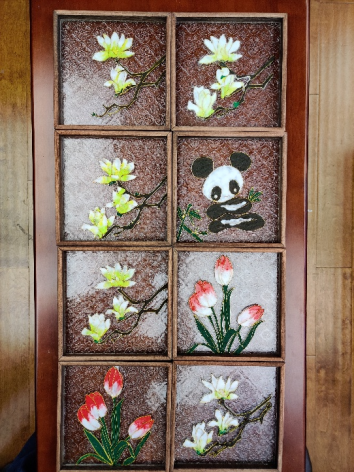 活动中,非遗掐丝珐琅的传承人向老师们介绍了这项中国传统金属工艺与珐琅彩绘结合的独特的古老技艺,接下来老师们学习着将金属丝精细地固定在模板上,形成各种造型精巧的美丽图案,再将彩砂调水后填入丝线分隔区域,花朵、树干、蝴蝶、熊猫等形象就跃然出现了。