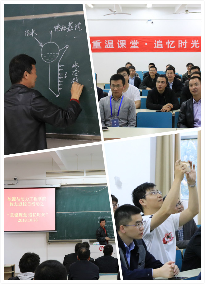 在学海苑公共教学组团南馆A206带领各位校友重温课堂,再上一堂课。资深老教师辛洪祥为各位校友重温“锅炉原理课”。辛老师认真地书写板书,画图,讲解锅炉水循环的动力,阐述自然循环的基本原理。校友们认真聆听辛老师的授课,仿佛又回到了求学岁月。讲课结束后,校友们纷纷感叹,时光荏苒,多年后聆听老师上课,更加感恩老师当年的培养,是各位老师的辛勤教育才让他们在工作岗位上取得各自的成绩,母校难忘,师恩难忘。