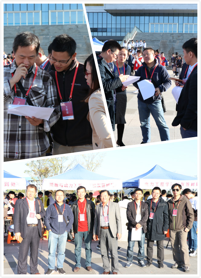 各系、综合办、学工办老师在“天健苑”体育广场的校友报到点集合,以喜悦的心情、激动的感情、饱满的热情迎接各位校友的归来。