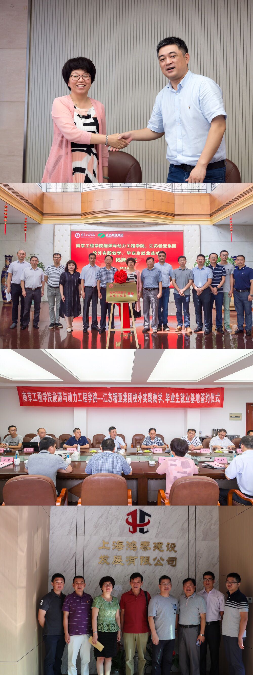 为进一步促进校友工作,开拓就业市场,听取用人单位对学校人才培养等方面的反馈和建议,探讨校企合作、建立人才长期战略合作和大学生就业基地等事项,8月22-23日,天天德州 一行赴江苏精亚集团、上海鸿泰建设发展有限公司开展用人单位走访和校友跟踪调研,并在江苏精亚集团举行了校外实践教学和毕业生就业基地签约揭牌仪式。天天德州 领导班子成员、相关专业教研室主任、学工办主任等参加了走访调研。