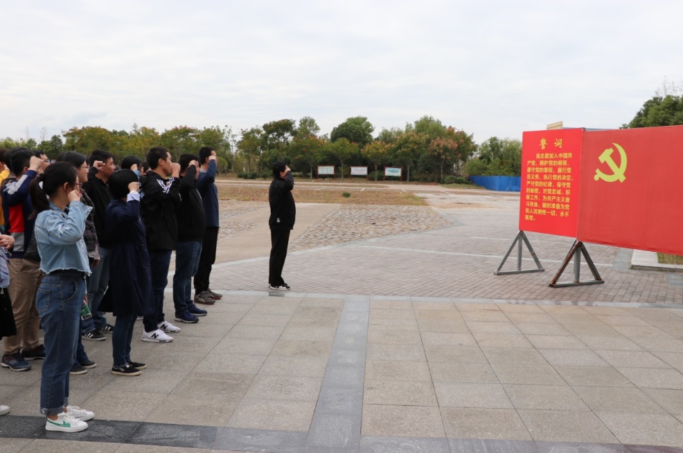 在讲解员的介绍下,党员同志们参观了新四军军史陈列室和新四军文化艺术馆,仔细阅读了新四军军部移驻黄花塘的历史背景和鲜为人知的故事,深入了解了新四军这支红色“铁军”在军事、政治、经济、文化等各方面的工作,深深地为老一辈无产阶级革命家运筹于草舍之间、决胜于大江南北的丰功伟绩所震撼,为新四军领导人的崇高品德和优良作风所折服。参观结束后,全体党员在纪念馆门前重温入党誓词,再次接受党性教育。