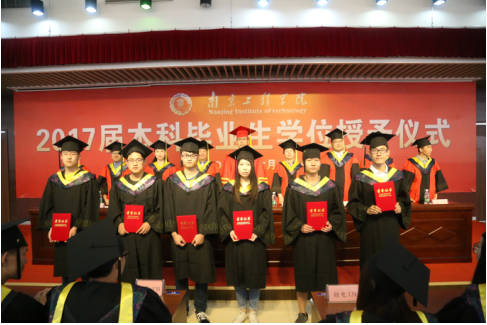 在热烈的掌声中,导师们为13位优秀毕业生颁发荣誉证书,为一批批身穿黄色垂带学士服的毕业生拨穗,并和他们合影留念。最后,全体师生齐唱校歌,学位授予仪式在全场师生热情洋溢的掌声和依依惜别的气氛中圆满结束。
