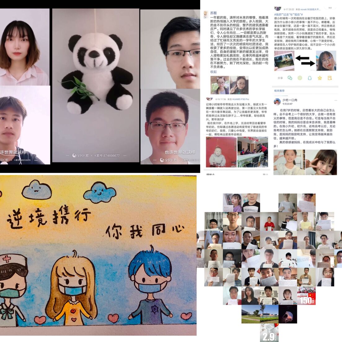 调节情绪、拥抱快乐。通过手中的画笔,以祝福为墨,同学们描绘了一幅幅白衣天使们义无反顾逆行的身影,从而引导同学们珍惜来之不易的幸福生活;有些以班级为单位,共同拍摄短视频“我想对‘你’说”,通过视频的方式传递自己对逆行者、亲人、朋友的祝福;在“同心抗疫云分享”中,该院共计34名参加家乡抗疫志愿的同学通过腾讯会议给大家分享了自己的志愿服务历程。