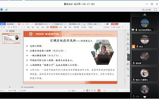 特邀南京玻纤院主任工程师暖通专业负责人许爱琴高工开展了以“空调系统设计浅析”为主题的线上直播学术讲座,该院200多名师生聆听了讲座。
