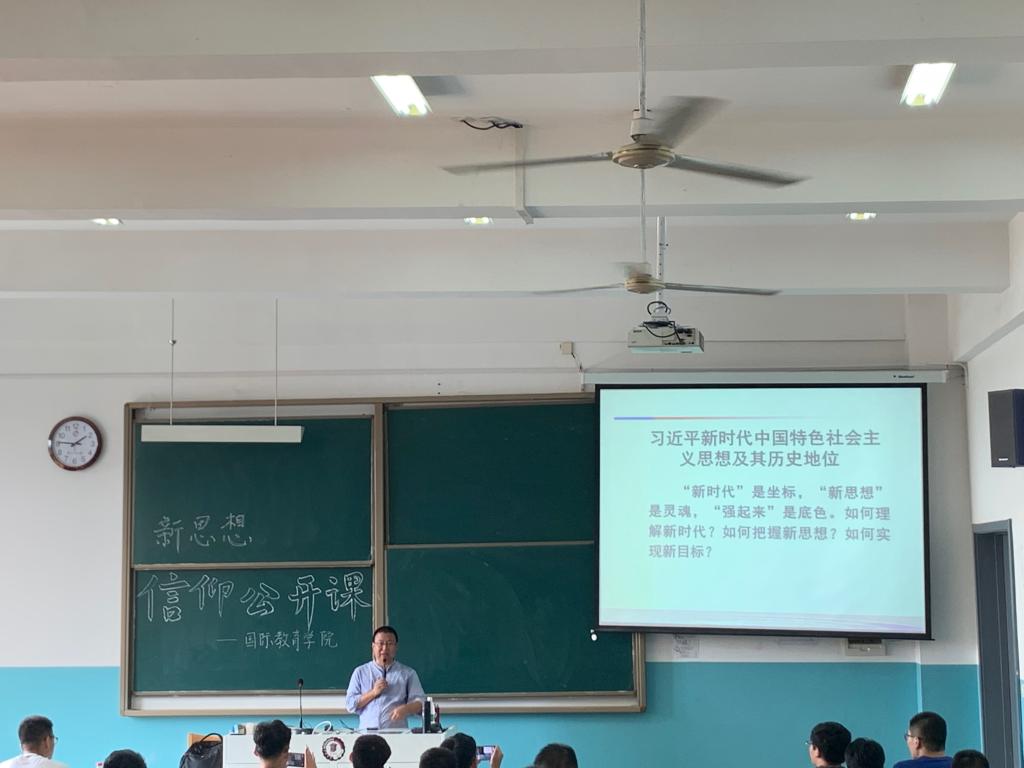 王孝勇教授,在经管楼D401教室为国教院19级新生展开了一场以“特色新思想、素养新提升”为主题的“新思想公开课”。