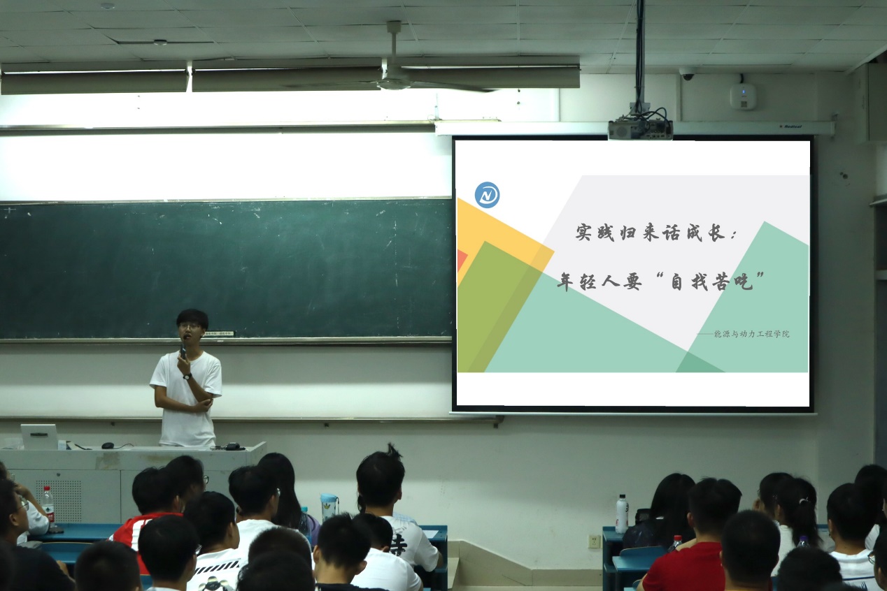 举办了以“我的青春故事,为梦想发声”为主题的梦想公开课。机械163班长、中共党员郭子晛从学习、竞赛、科研、全球视角四个方面为大一新生讲述了自己大学三年的学习历程,分享了自己申请专利、发表论文的心得。他为同学们介绍了机械学科的国家发展计划,呼吁学弟学妹们要明确目标,敢于自找苦吃,不断提高自身能力,努力投身于国家机械行业的建设当中去,将小我融入大我,以青春告白祖国。
