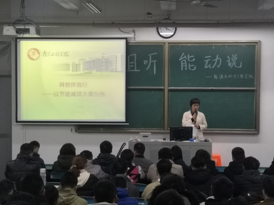 副教授、环境工程系主任王慧雅老师担任主讲。王老师以“科创伴我行——以节能减排大赛为例”为主题,从“为什么要开展科创”、“什么叫创新”、“怎么创新”、“如何开展科创”等方面,对大学生科创的基本步骤、科创的实现途径等几个方面给出了指导意见,她还结合参加大赛的经历,帮助同学们分析开展科创活动的切入点,希望创新创业能成为同学们大学生活的重要组成部分。