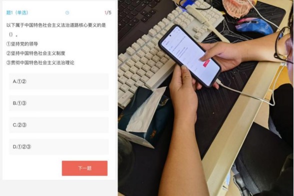 “将宪法宣誓制度写进宪法的是哪一个宪法修正案?答案是2018年宪法修正案。”来自集控211的王梦辉同学正在专心答题。天天德州