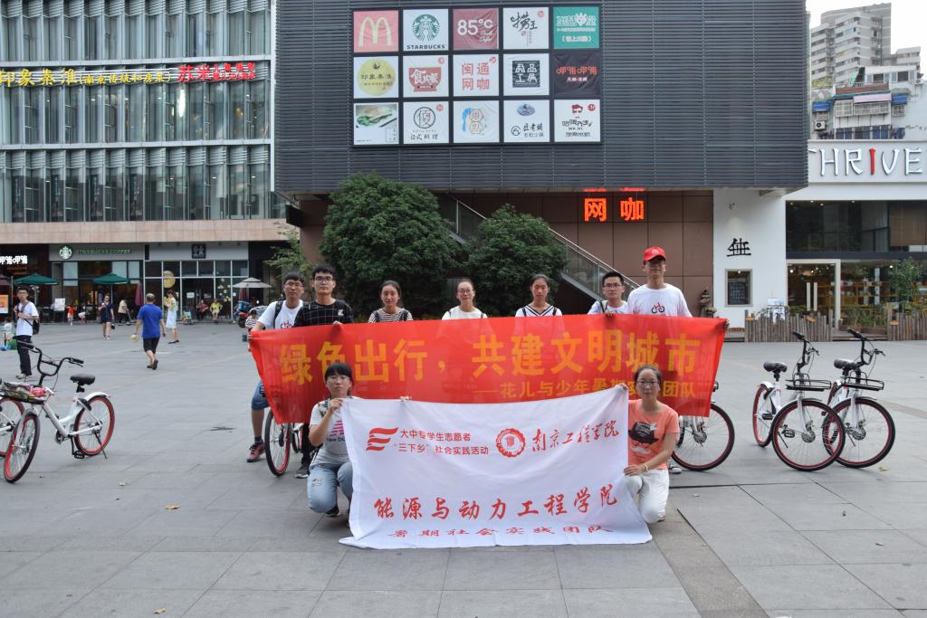 “花儿与少年”暑期社会实践团队开展的“拯救共享单车,倡导文明出行”青年志愿服务集中行动。