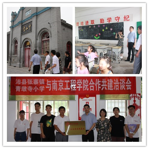 “圆梦支教”暑期社会实践团队与徐州市沛县青墩寺小学举行共建实践基地挂牌仪式。该院学生工作负责人、团队指导老师、青墩寺小学校领导与支教团队志愿者共同出席了揭牌仪式。