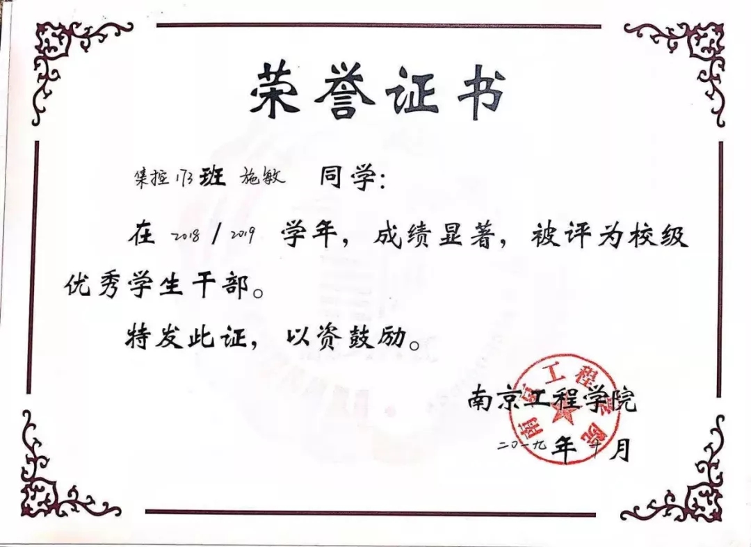 (火电厂集控运行)集控173班学生。入校以来先后获得国家奖学金、国家动志奖学金、校级特等奖学金、校级一等奖学金、校级二等奖学金、校级优秀学生干部、校级优秀团员、暑期社会实践校级先进个人等荣誉。